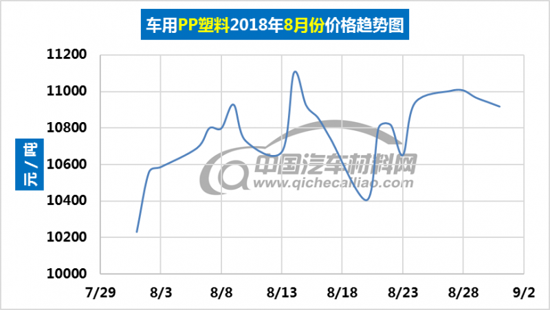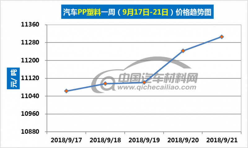 车用PP塑料本周价格呈上涨趋势,一周内涨幅为243.35元/吨,本周五价格涨至11306.12元/吨。车用PP塑料本周均价为11161.81元/吨,较上周上涨0.69%,较8月份均价上涨1.44%。