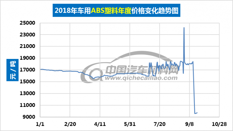 汽车用ABS塑料年度价格趋势:2018.01.02-2018.09.21