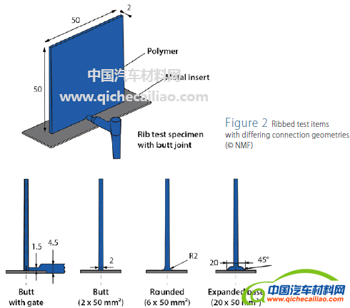 该技术在汽车仪表板支架、前端模块等部位上具有较好的应用前景。在金属与塑料材料的结合方面,传统方法多采用紧固件连接。而最新的研究表明,通过合适的粘合剂粘合,可明显提高部件的刚度和强度:弯曲和扭转强度可提高45%,扭转刚度是紧固连接件的2倍。此外,也有将金属板加热到塑料熔化温度实现粘合的研究,但其温度适应性较差。目前,针对耐久性粘合剂的研发主要集中在开发底漆层以促进粘合。