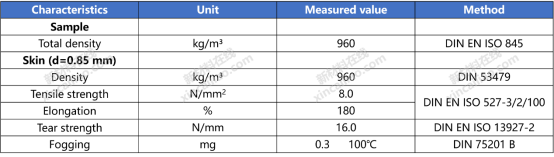 BASF 用于汽车内饰的Elastoskin材料物理性能