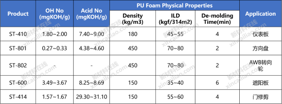 MCNS的基础多元醇产品体系及半刚性系统产品均广泛应用于汽车仪表盘、坐垫、遮阳板等部件中。