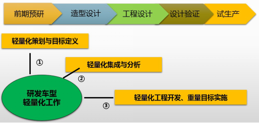 伴随着轻量化技术的深入研究与应用,对于轻量化工作定位,有着不同理解,有些主机厂认为轻量化就是用先进的新材料来替代传统材料,属于汽车材料领域工作,有些主机厂认为轻量化就是用先进技术来替代传统技术,属于新技术开发领域工作。我个人认为,轻量化不仅仅是一种新材料或者一项先进技术,它是属于性能开发,轻量化作为研发车型的一项重要技术指标,和其他性能指标一样(比如安全指标),必须在整个车型的研发周期内同步开发实施与管控,确保目标的最终实现。
