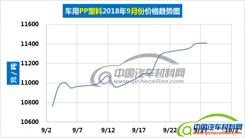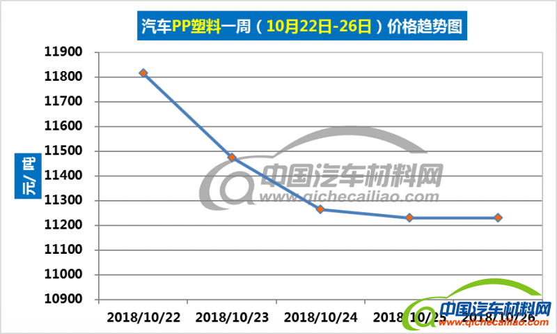 车用PP塑料本周价格呈下跌趋势,一周内跌幅为586.24元/吨,本周五价格跌至11230.24元/吨。车用PP塑料本周均价为11403.30元/吨,较上周下跌3.33%,较9月份均价上涨2.66%。