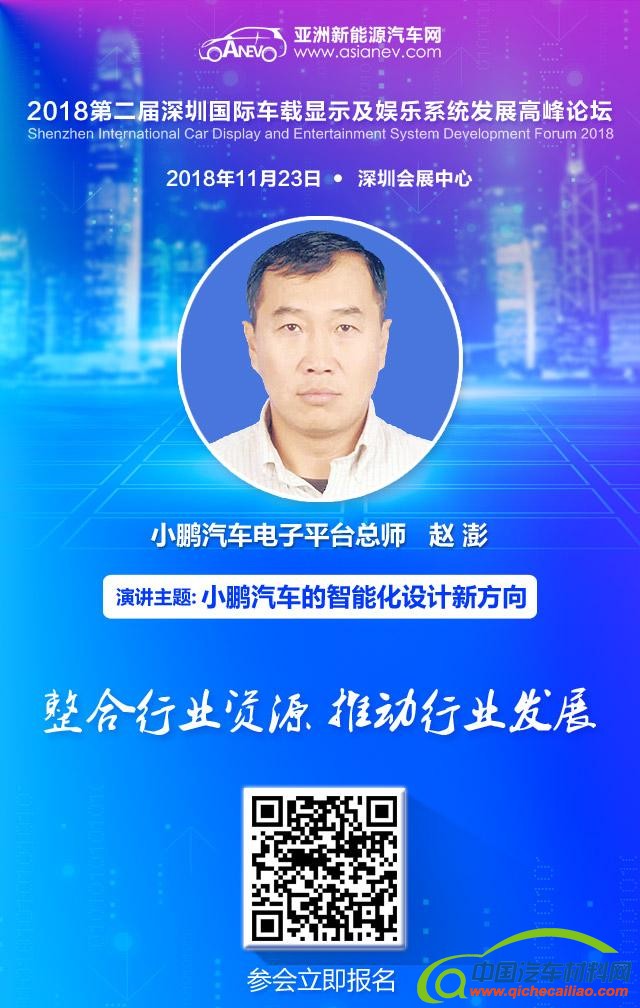 11月23日第二届深圳国际车载显示及娱乐系发展高峰论坛已经邀请到赵澎先生发表演讲:小鹏汽车的智能化设计新方向。
