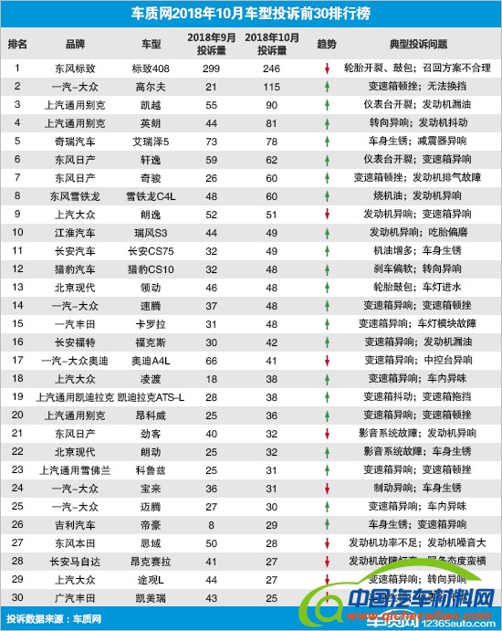 数据显示,本月车质网接到的有效投诉信息共涉及577款车型,投诉达两位数(含)以上的车型119款。同期,车质网共接到车企针对投诉回复反馈6197条(含部分9月份投诉的回复)。在去除投诉人因为车企解决得当而自愿申请撤诉的信息后,2018年10月投诉量前30的车系(车型)排名如下: