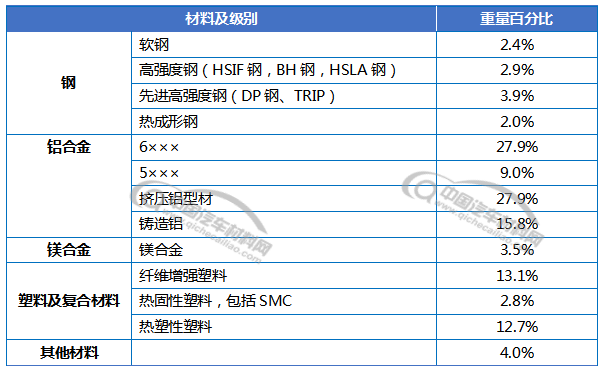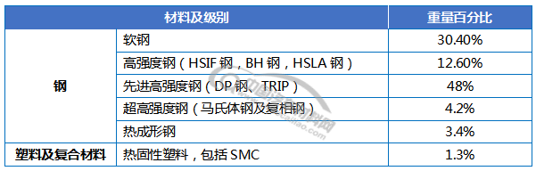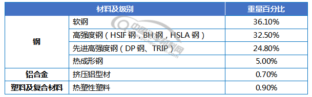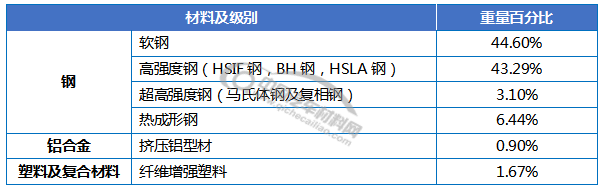 车身用材结构如下: