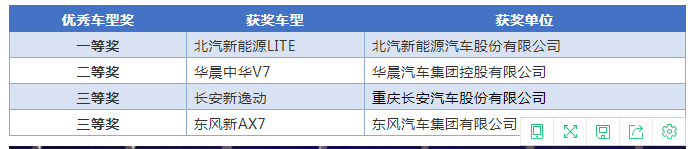 优秀车型三等奖
