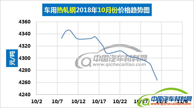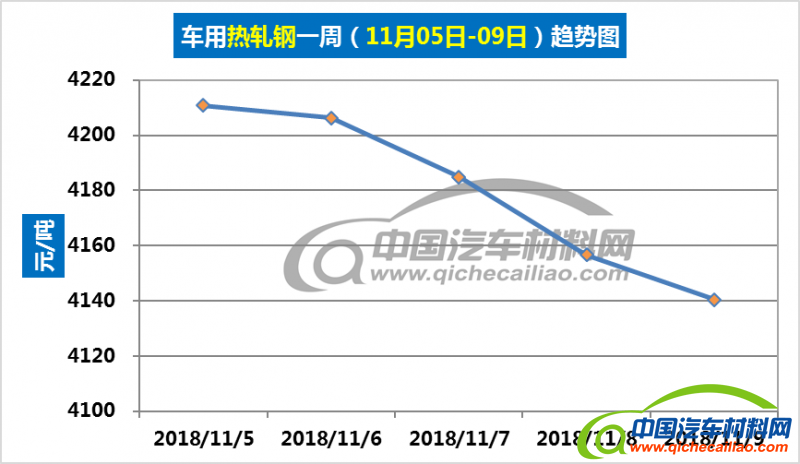 热轧钢本周内价格总体呈下跌趋势,一周内跌幅为70.42元/吨,本周五价格跌至4140.42元/吨。车用热轧钢本周平均价格为4179.8元/吨,较上周下跌1.89%,较10月份均价下跌3.14%。