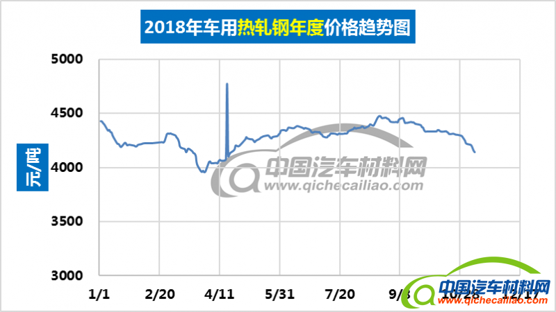 车用热轧钢年度价格趋势:2018.01.02-2018.11.09