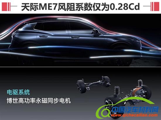 动力方面,天际ME7搭载的博世永磁同步电机的最大功率为170kW,最大扭矩330Nm;系统综合功率320kW,综合扭矩640Nm。四驱高性能版本的0-100km/h的加速时间为4.9秒,电池能量密度为160Wh/kg,综合续航里程500km,60km/h等速续驶里程可达700km。