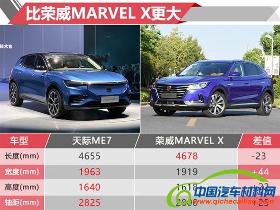 今天的发布会可谓“干货”满满,关于天际ME7的诸多核心卖点被一股脑地展示出来:通过拉长轴距和缩短前后悬的方式,该车获得了更流畅的车身比例,车身长宽高分别为4655×1963×1640mm,轴距达到2825mm,比定位相近的荣威MARVEL X更大一点。车身整体采用以高光黑车顶、AB柱和镀铬线条为视觉核心的三色系设计,并在前进气口、车尾格栅与车门踏板下方设置撞色色条作为点缀。 同时,其采用了水晶LED光源和突出品牌识别度的横贯式灯带设计。