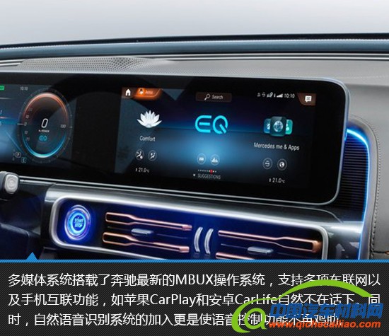 奔驰EQC的内饰依旧能看到大量奔驰元素,让人一眼就能辨认出这是一辆奔驰。但对细节处的雕刻,以及可回收再利用的环保材料,很符合其自身新能源特点。全新升级的多媒体系统加入了自然语音识别功能,从而令语音控制不再是鸡肋功能。