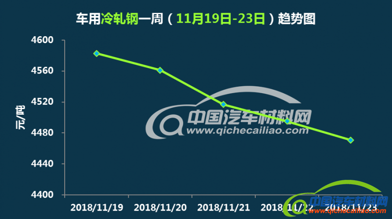 冷轧钢本周价格持续下跌,一周内跌幅为111.89元/吨,本周五价格跌至4470.87元/吨。车用冷轧钢本周平均价格为4525.34元/吨,较上周下跌2.15%,较10月份均价下跌6.62%。