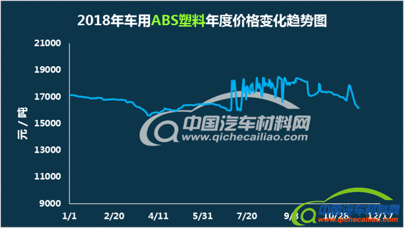 汽车用ABS塑料年度价格趋势:2018.01.02-2018.11.23