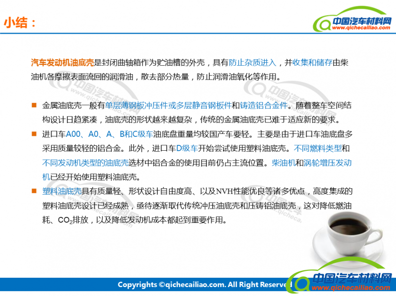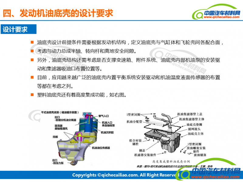 【中国汽车材料网】油底壳英文名称为:Oil Pan,位于引擎下部:可拆装,并将由轴箱密封做为贮油槽的外壳。