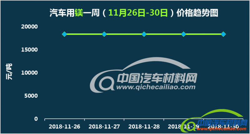 汽车用镁年度价格趋势:2018.01.02-2018.11.30