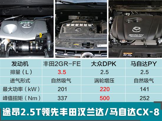 动力方面,上汽大众途昂轿跑搭载2.0T发动机(高/低功),2.5T V6发动机。新车上市后将竞争丰田汉兰达、马自达CX-8等车型。