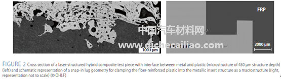 塑料/金属复合材料结合了两种不同类别材料的性能优势,是近年来汽车行业备受青睐的轻量化材料解决方案。传统塑料/金属复合材料通过物理胶接的方式实现结合。但这种方法不适合大规模量产,且较容易发生结合失效。此外,在注塑成型过程中添加金属材料的嵌件技术也被开发和应用。但该工艺对注塑的模具及压力控制等要求较高。