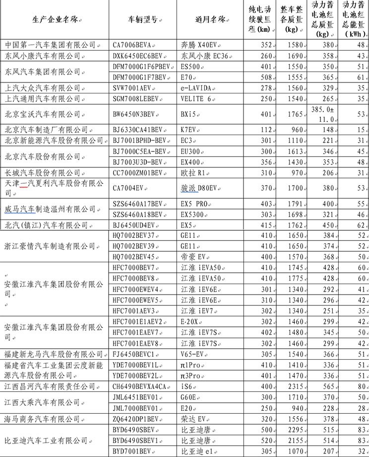 12月18日,工信部发布《免征车辆购置税的新能源汽车车型目录(第22批)》,共278款新能源车型入选,其中86款乘用车,包括63款纯电动乘用车和23款插电式混合动力乘用车,比亚迪、长安、北汽新能源、威马、国能新能源等企业车型入选。
