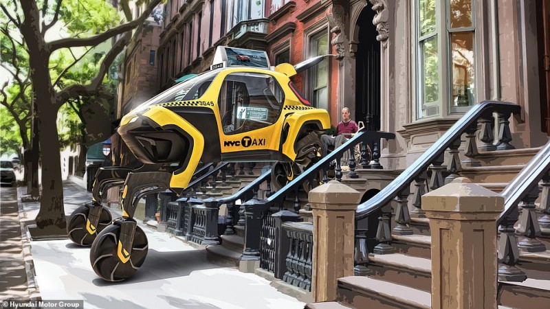 现代公司甚至在视频中展示了将该车作为纽约概念出租车,概念车的两个后轮攀上台阶,后舱门打开,方便乘坐轮椅的乘客直接将轮椅驶入出租车内。