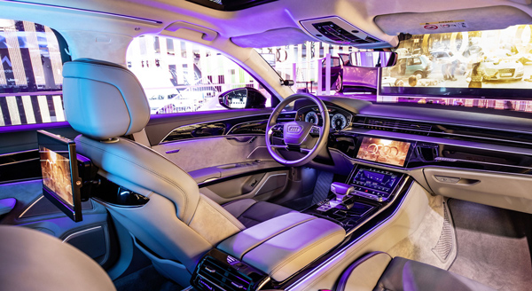 当一辆未来的奥迪车停止在车流中,车载娱乐的体验效果并不会随着车辆动态效果的消失而大打折扣。为了解决乘客的动态体验,奥迪开发了一套“沉浸式车载娱乐系统”来解决“让车动起来” 的问题。