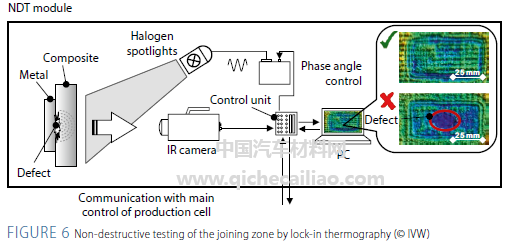 为实现工业批量化应用,项目组引入了热成像技术,以保证产品质量的稳定。该技术借助卤素灯等光学热源,可通过调制频率调节检测深度,对产品质量进行检验,如图6。