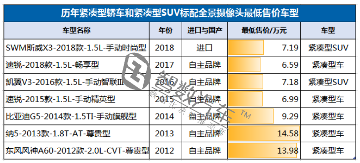 全景摄像头的应用受车型价格因素影响较大,由调研数据来看,50万以上车型的标配率明显增加,超过了60%。受自主品牌价格区间的影响,10-20万价格的车型全景摄像头标配率也达到了近20%。同时,随着汽车产品的竞争加剧和全景影像技术的发展,全景摄像头配置车型的价位也逐年下探,最低标配车型价位从2012年的13.98万,近两年已降至6-7万。