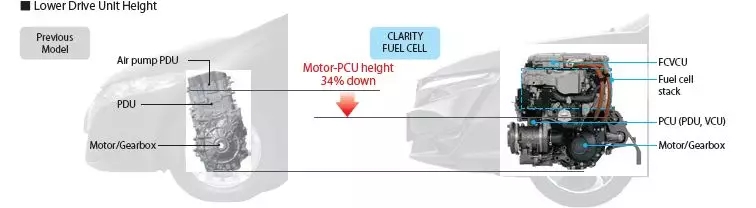 本田的核心技术,是将燃料电池发动机集成到和V6标准发动机相同的大小。这让Clarity在布置上,可以大量借鉴传统汽车的结构,降低设计风险。