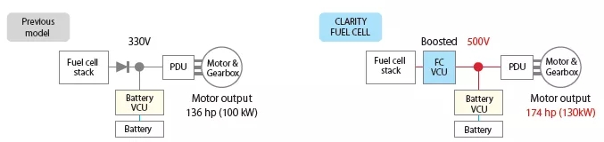 本田的电电混合系统,由燃料电池、锂离子电池通过本田特有的部件FCVCU进行连结。