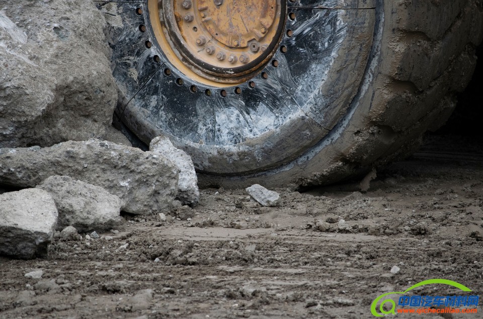 在加拿大多伦多和得克萨斯州达拉斯的集料回收现场,这种聚氨酯基的胎侧保护装置已经进行了测试。它已经安装在Caterpillar 980型装载机的前轮胎上。