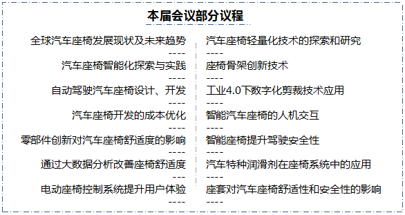 本届峰会相比往届新增商用车、儿童座椅分论坛,Workshop技术研讨会,将深入探讨座椅零部件创新技术与舒适性– 轻量化 –智能化与安全性等技术热点话题,推动国内外厂商的最新技术交流,真正推动汽车座椅技术的飞速发展。
