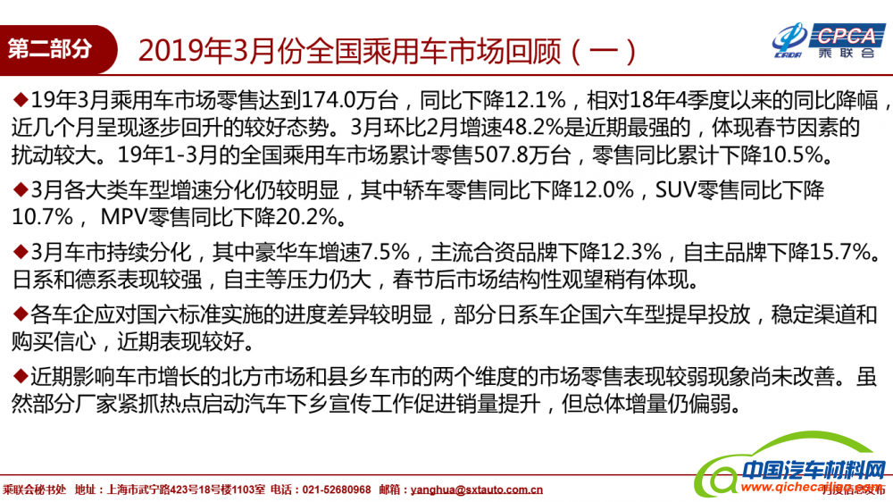 日期:2019-04-09 来源:乘联会 作者:中国汽车材料网