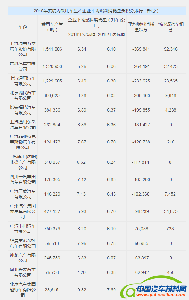 总体来看,境内乘用车生产企业中,有接近40%的车企燃料消耗量积分为负。我们列出了平均燃料消耗量负积分较多的企业名单,如下表所示: