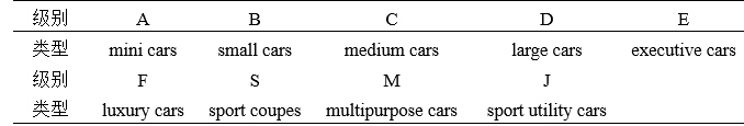 注:欧洲车型分级如下表所示,世界各国对车型级别的分类详见:Car classification(http://en.wikiPEdia.org/wiki/Euro_Car_Segment)