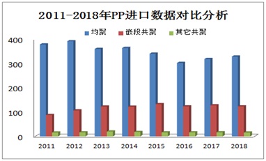 2011-2018年进口数据对比中发现,均聚进口量在2016年出现转折性增长,主因国际原油价格逐步抬升,国际聚丙烯成本提升所助推;而嵌段共聚进口量在2015年达到近几年高峰后,后面三年进口量均保持基本持平,主因国内嵌段共聚供应量逐步提升,对国外进口依赖度逐步下降,导致进口嵌段共聚难有新增加。其它共聚整体进口量变化并不明显,由于国内透明进口量主要集中在下游工厂进口来料加工贸易中,进口透明料在国内市场流通量相对偏紧。