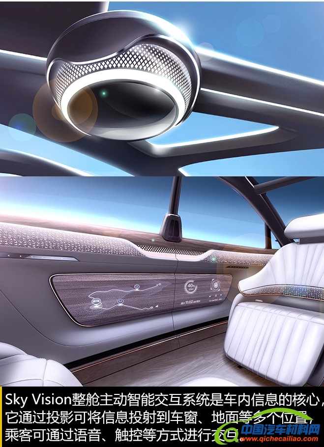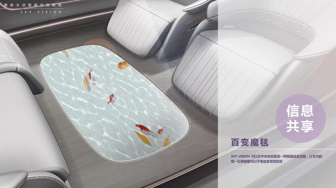 Vision-i概念车搭载的整舱主动智能交互系统是一个可在车顶上来回滑动的投影模块,可将信息投射到车内的各个方位,车内乘员既可以分开获取所需的信息,也可以共享一块区域,共同交流情感和体验。依托于5G,交互的能力空前强大,全息AR、VR等都可实现。比如坐车的时候想让朋友来陪你,可以直接把朋友的全系投影放到身边的座位;或是想在车里来一场直播、几个合作伙伴开个会、与家中的智能家居互动等等……