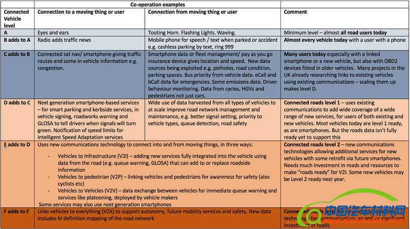 ITS-UK的秘书长Jennie Martin补充道,“新的量表如SAE自动化量表一样,用易于理解的方式来解释车辆的互联性。它将真正帮助人们了解我们在车辆互联方面所处的位置,以及我们还有多少进步空间。”