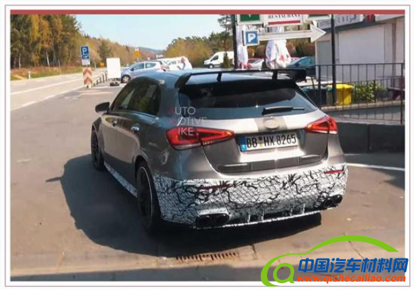 新车侧面流线较为平整,线条更加明显,与现款车型圆润的造型设计有所区别。尾灯的造型采用“水滴”式设计,并且延展到了尾门上,使得车尾显得更加宽大。车顶扰流板和下方空气动力学设计,搭配双边共四出尾排,让AMG A 45有一种跑车既视感。