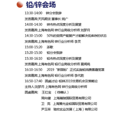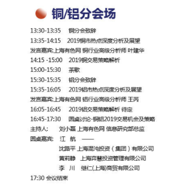 本次会议除了SMM资深分析师针对当前市场热点进行全面分析,如铜供应收缩为何没能让铜价起飞、铝价近期反弹的背后原因及未来走势、锌矿供应及锌库存拐点是否来临、“新国标”正式实施铅消费雾霾笼罩、短期不锈钢支撑镍中期平衡逐步转向过剩、在溃坝事件后铁矿石价格飞升后续故事如何、黑色全产业有何交易机会等。SMM还邀请到了天风期货董事长姚广、中泰证券研究所执行所长笃慧、杭州象石实业有限公司总经理宾益湘、热联中邦研究总监李伟、上海卓尚资产白额尔登、上海瀚骏国际贸易有限公司周向健、上海豫光金铅国际贸易有限公司卫亮、驰宏实业发展(上海)有限公司尹玉荣、上海混沌投资有限公司周钱、上海弈慧投资管理有限公司黄莉静、继仁(上海)商贸有限公司李川、美尔雅期货戴霞、弘则研究黑色分析师黄溢等投资界实战大咖,现场与您一起头脑、为您的2019年投资指明方向!