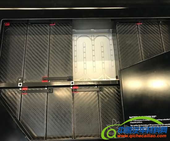 位于一体式车身内的38个电池模块不仅提供了EV的动力,还提供了结构。每个136mm宽的电池模块都包含LG Chem公司(韩国首尔)生产的10个袋式锂离子电池。袋子被放在一个CFRP盒中并得到保护。38个电池模块盒中的每一个均采用扁平的CFRP板材和高度自动化的223工艺制成:当盒表面的板材部分固化后,在固化表面之间留下柔韧的未固化铰链,这些铰链允许将固化的板材部分折叠成盒子,然后进行最终固化和粘接,以形成刚性的外壳。每一个盒子都是一个抗冲击、可承载的外骨架,从而有助于提高碰撞的安全性。这些盒子被单独放置并一起起保护的作用,通过整体式车身而提供显著的扭转刚度和弯曲刚度,进而可以处理一些负载(否则这些负载将由CFRP 侧轨来管理),这样可以使它们的设计更加轻质。