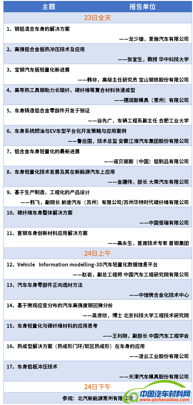 指导单位:中国汽车工程学会材料分会、汽车轻量化技术创新战略联盟