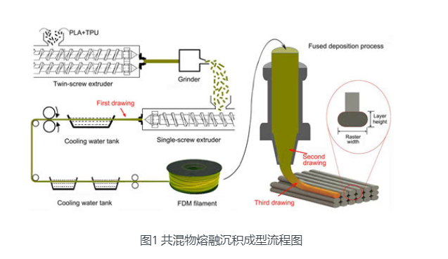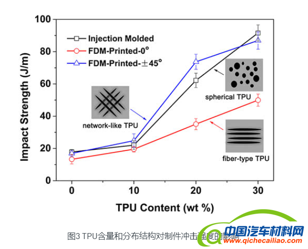 最近,研究人员以聚乳酸(PLA)为基体,以热塑性聚氨酯(TPU)为填料,通过熔融沉积技术的整个加工流程实现了弹性体TPU原位成纤,纤维状TPU的平均长度可以实现从67.24μm到103.72μm的精准调控。同时,TPU成纤有效改善了其与PLA基体的界面结合力。研究发现,3D打印形成的网格状TPU可有效补偿打印空隙对打印件力学强度的弱化效应,使产品的韧性达到甚至超过注塑水平。该熔融沉积原位纤维技术为制备高韧性聚乳酸复杂结构零件提供了简便有效的方法(Macromolecular Materials and Engineering, 2019, 1900107)。