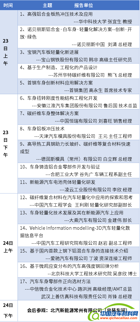 • 会议日程公布 | 中国(首届)新能源汽车用钢大