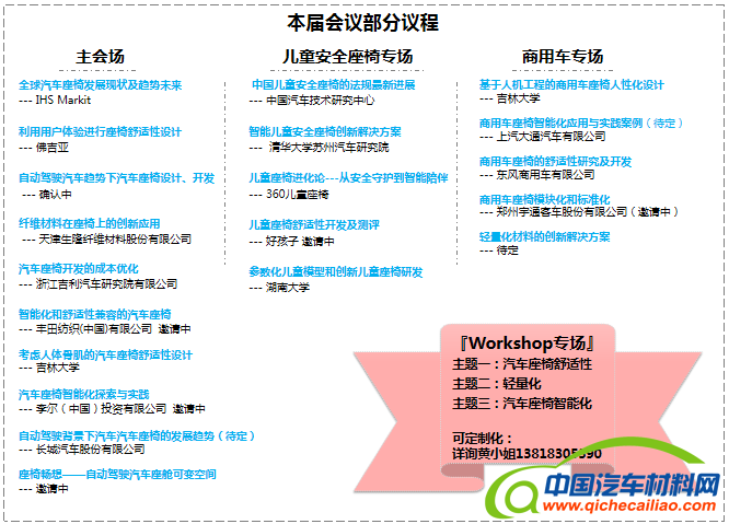 本届峰会相比往届新增商用车、儿童座椅分论坛,Workshop技术研讨会,将深入探讨座椅零部件创新技术与舒适性– 轻量化 –智能化与安全性等技术热点话题,推动国内外厂商的最新技术交流,真正推动汽车座椅技术的飞速发展。