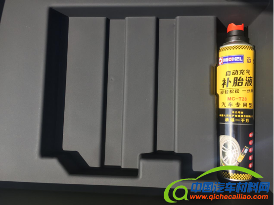 为增加后备箱利用空间,北汽EX3车型取消了备胎,配备了迈克自动充气补胎液MC-T28型号,不仅节省了空间又实现了整车轻量化效果。