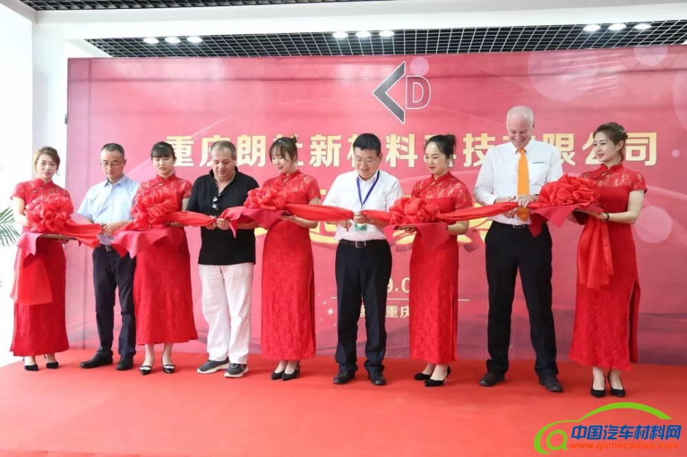 庚业科技董事长郑新忠先生、重庆朗杜科技董事长杨思瑾先生、上海京昊汽车配件有限公司沈斌先生、新加坡AQM公司张国荣先生上台为合资公司剪彩