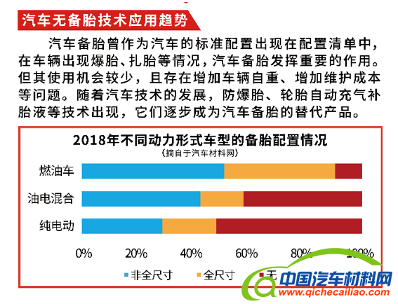 从下图我们可以看出,2018年,新能源汽车无备胎化占比达到了一半以上,其他动力形式的汽车也有相当比例采取了无备胎化,这意味着汽车市场将逐渐取消传统备胎,使用全新的替代产品。