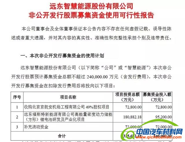 其中,远东福斯特高能量密度动力储能(方形)锂电池研发及产业化项目,预计总投资额为18亿元,其中建设投资约15.5亿元,将在江西宜春建设4条全进口方形动力电芯生产线及配套厂房和仓库等辅助工程。项目建设期为2年,预计税后内部收益率为15.63%。