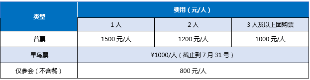 注:参会费用含会议门票、会议资料、午餐、茶歇等,不包括住宿;