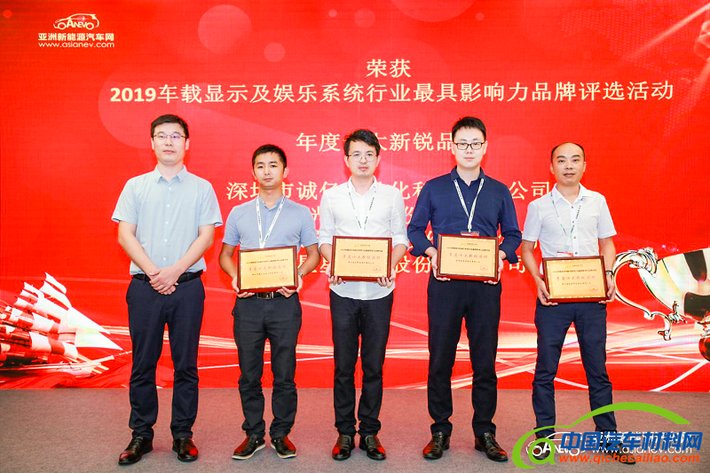 荣获2019年度车载显示及娱乐系统行业最具影响力品牌评选“年度十大新锐品牌”企业:深圳市诚亿自动化科技有限公司、欧菲光集团股份有限公司、深圳莱宝高科技股份有限公司、浙江星星科技股份有限公司。